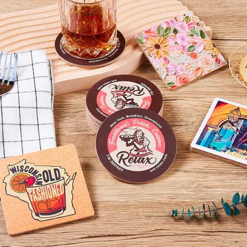 3. Select coaster material. You can choose among paper, pulpboard, cork, vinyl, foam and more.