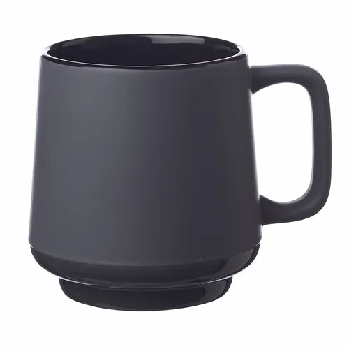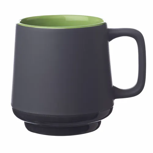 15 oz. Ceramic Mugs. Stackable Up to 4 on One Row. Matte Grey Finish with Pop Color Interior of Your Choice. Recommended Hand Wash Only