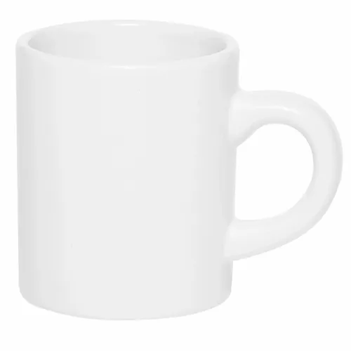 4 oz. Mini Ceramic Mugs. C-Shaped Handle. Durable Stoneware Material. Recommended Hand Wash Only