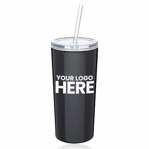 Double Wall Stainless Steel Tumblers with Straw. Clear Plastic Tritan Screw-On Lid. Stainless Steel Interior and Glossy Metallic Stainless Steel Finish throughout the Exterior. Double Wall Vacuum Insulated. Wide Application for Easy Cleaning. Fits Most Standard Size Cup Holders. Straw Length: 9"Long