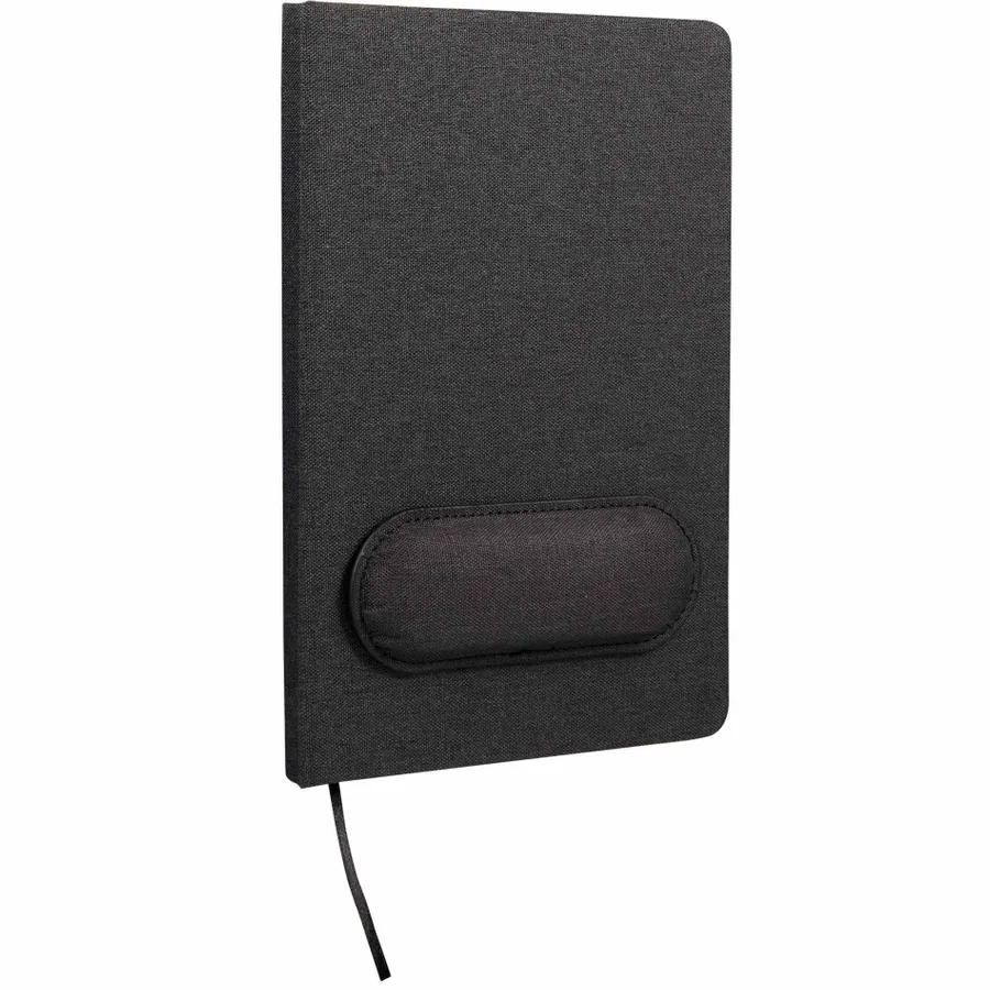 The 5.5 x 8.5 FSC Recycled Mouse Pad Bound Notebook is the ideal addition to your workday, blending comfort and functionality. Featuring a 100% recycled PET fabric cover, this notebook includes a unique matching magnetized wrist pad for comfortable scrolling. Inside, you’ll find 80 sheets of FSC recycled lined cream paper, perfect for eco-conscious note-taking. A grey ribbon page marker adds functionality, helping you keep track of important notes. Please note magnetic mouse pads are packed separately and removed from the notebook in the master carton. By choosing this notebook, you’re making a positive impact on the environment through a partnership with 1% For The Planet, as a portion of each sale supports environmental nonprofits.