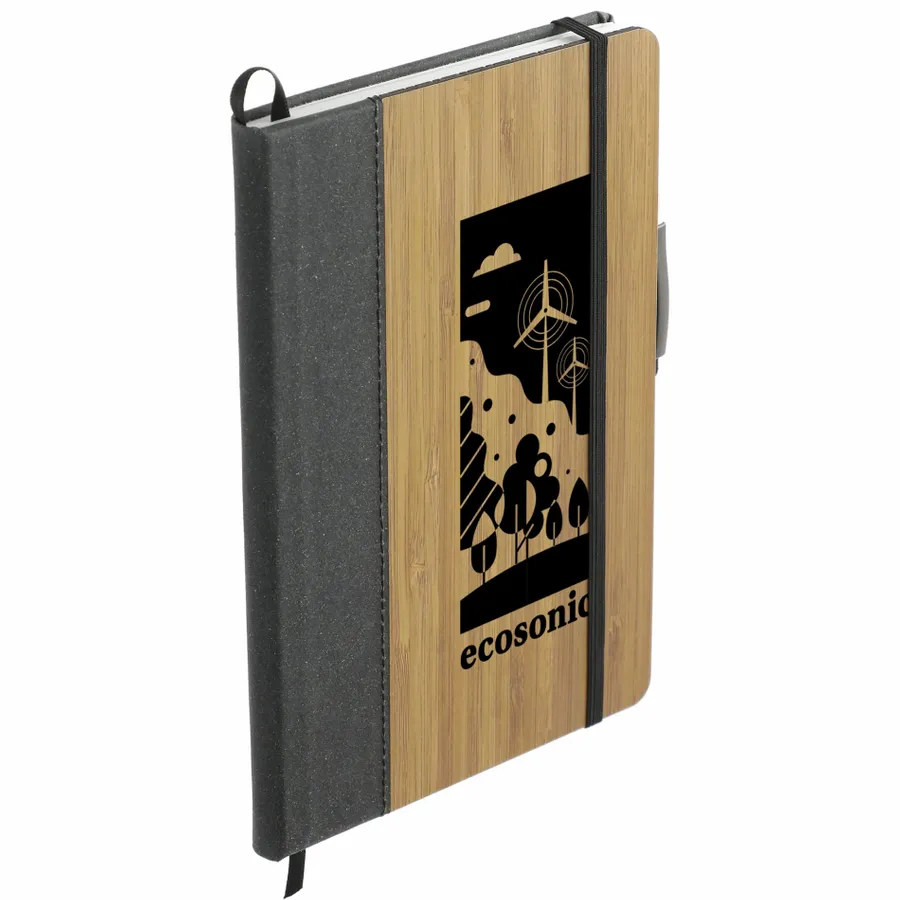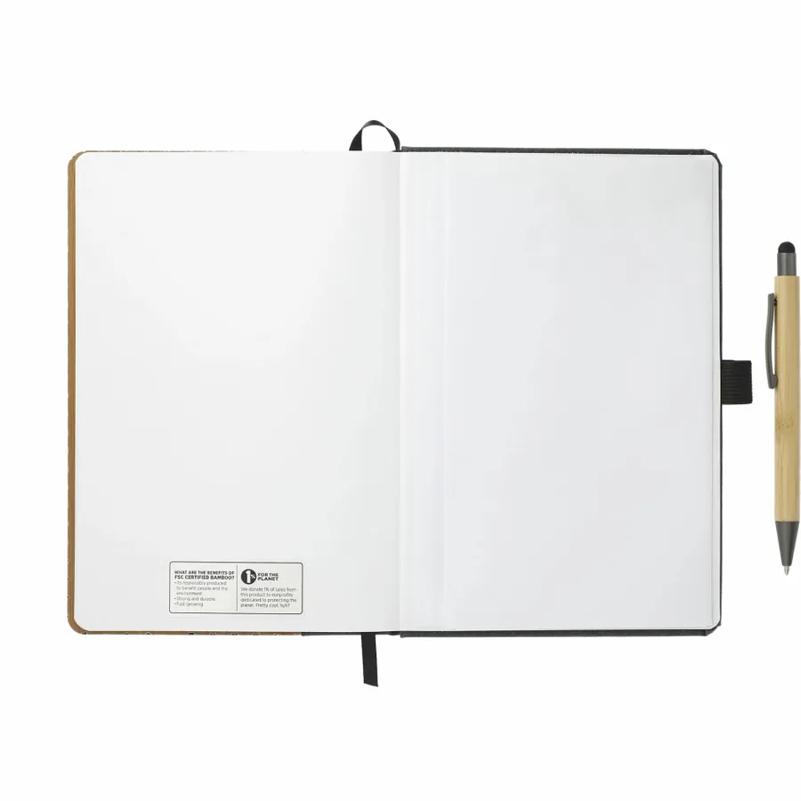 This set includes the (2800-78) Bamboo Bound Journal and (1066-50) Bamboo Quick-Dry Gel Ballpoint Stylus. It features a unique bamboo cover with recycled leather accent. 80 sheets of recycled, white lined paper. Includes elastic closure, ribbon page marker and elastic pen loop. Through a partnership with 1% For The Planet, one percent of sales of this and all EcoSmart products will be donated to nonprofits dedicated to protecting the planet. Due to the nature of the material, there may be color variances.
