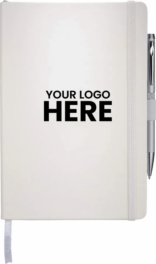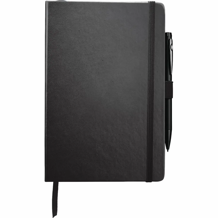 The 5.5 x 8.5 FSC Mix Nova Bound Journal features a faux leather like, hard cover with built-in elastic closure, ribbon page marker, and expandable accordion pocket. Includes 96 sheets of lined white FSC Mix paper. Pen is not included.