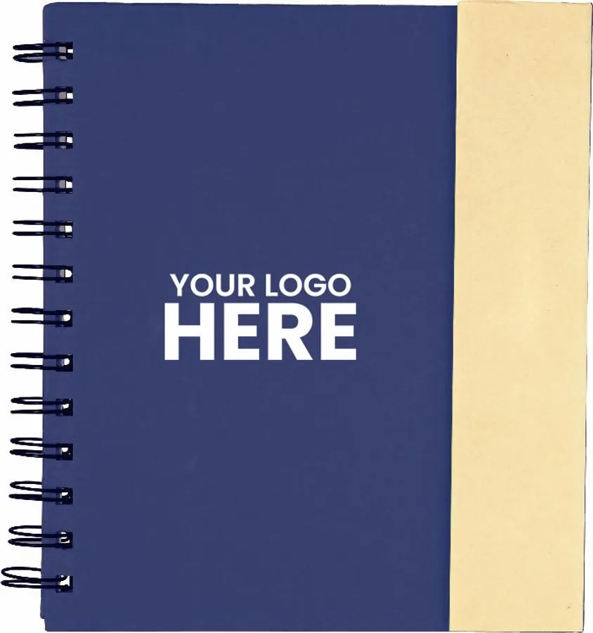 The Bullet 6.5 x 7 FSC Mix Lock-it Spiral Notebook features 70 ruled pages of FSC Mix paper and a magnetic closure. It also includes 25 sheets of 4 x 3 sticky memo pads and 25 sheets of 3 x 2 sticky memo pads in 5 assorted colors. The Lock-it Spiral Notebook also comes with a recycled cardboard ballpoint pen. Note that a pen imprint is not available and pens are packed separately.