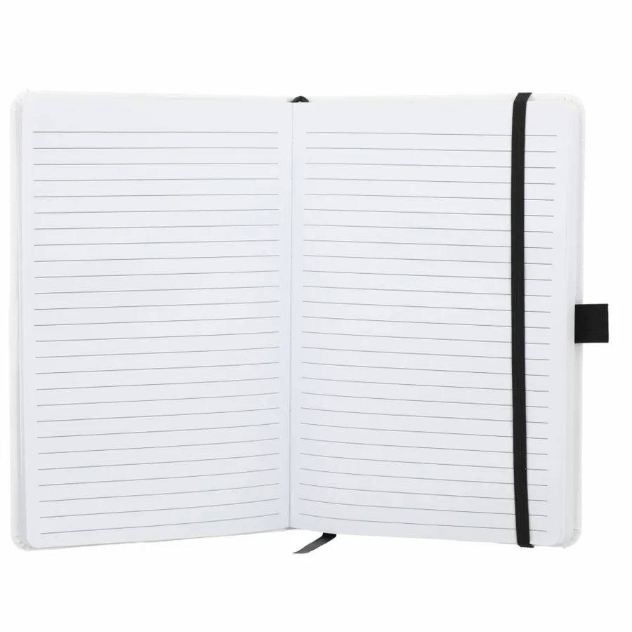 The 5.5 x 8.5 FSC Recycled Bamboo Fiber Bound Notebook features a bamboo fiber fabric hard cover with colored elastic closure and ribbon page marker. Includes 80 sheets of FSC recycled white lined paper. Through a partnership with 1% For The Planet, one percent of sales of all EcoSmart products are donated to environmental nonprofits.