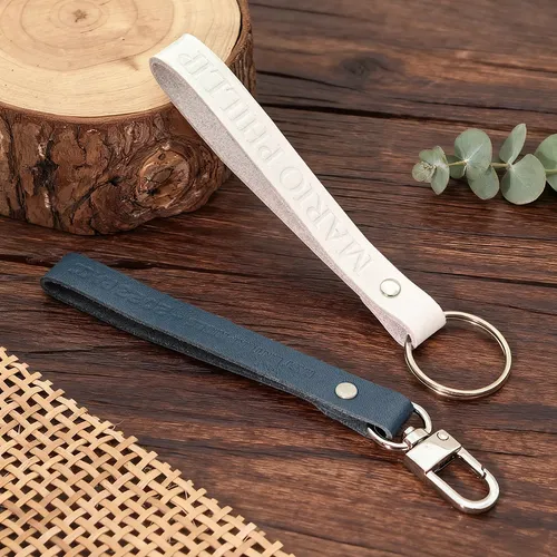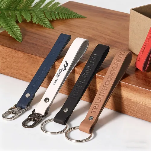 One of the best and most effective ways to promote your business in this new generation is to use personalized keychains. Our leather keychains last longer than ordinary ones and can be used for your house, car keys, and almost any key combination. They're beautiful on their own but even more elegant with your logo or business name debossed onto them. Our leather keychains are entirely handmade from 100% genuine first-layer leather, ensuring sturdiness that will last a lifetime. Each keychain measures 5.5 inches in length and 0.5 inches in width, plus the keychain attachment of your choice.