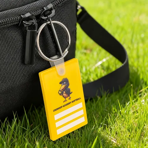 Our luggage tag keychains can be customized and are made of 2.16" x 1.38" soft plastic and a 2cm diameter metal ring. Reasonable size for easy carrying, is light and handy and has good tags for your stuff so you can easily find it. It's convenient and practical, suit for a home, office, keychain, a bunch of keys, pet ID tag, luggage tag, rental management company, storage facility, and more.