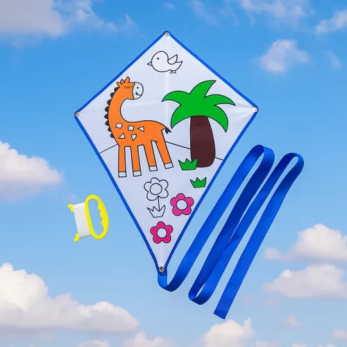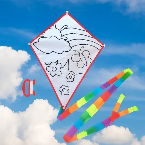 • Let your creativity soar with the DIY Coloring Kite! Made from sturdy, tear-resistant ripstop polyester fabric, this kite is ready for you to personalize.