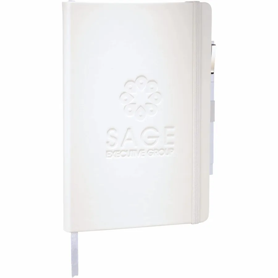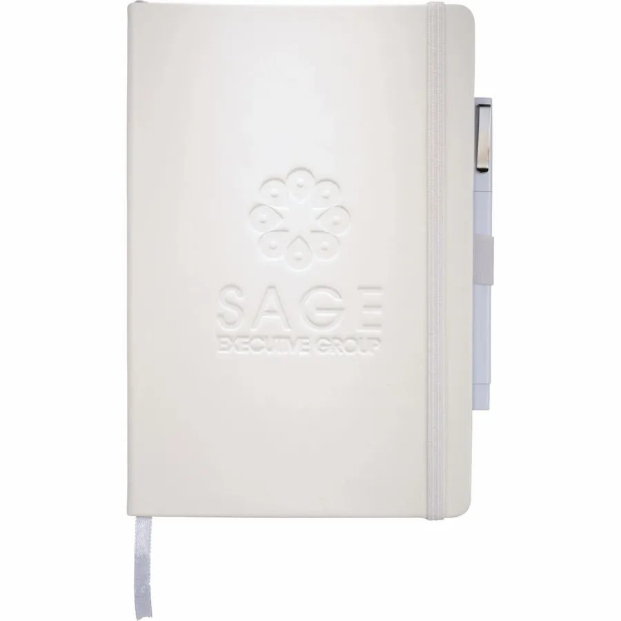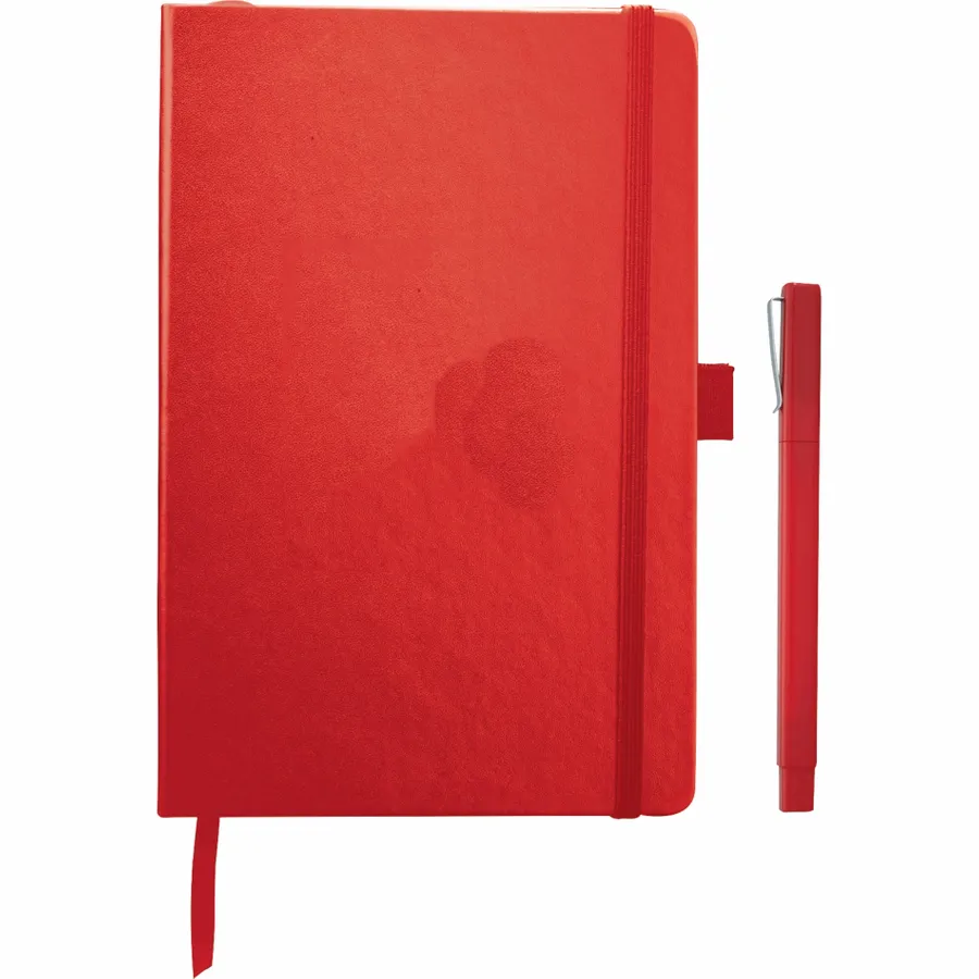 The Nova Bound Journal Bundle Set includes a Nova Bound Journal (2800-11) and Ambassador Square Ballpoint (6620-31). The Journal features a faux, leather-like hard cover with built-in elastic closure. This custom notebook includes a ribbon page marker and expandable accordion pocket. The Nova Bound Journal Bundle Set includes 96 sheets of lined white paper. This item cannot be configured online. Contact us to order. (2800-11) Nova Bound Journal (6620-31)Ambassador Square Ballpoint Faux, leather-like hard cover Built-in elastic closure Ribbon page marker Expandable accordion pocket 96 sheets of lined white paper This item cannot be configured online