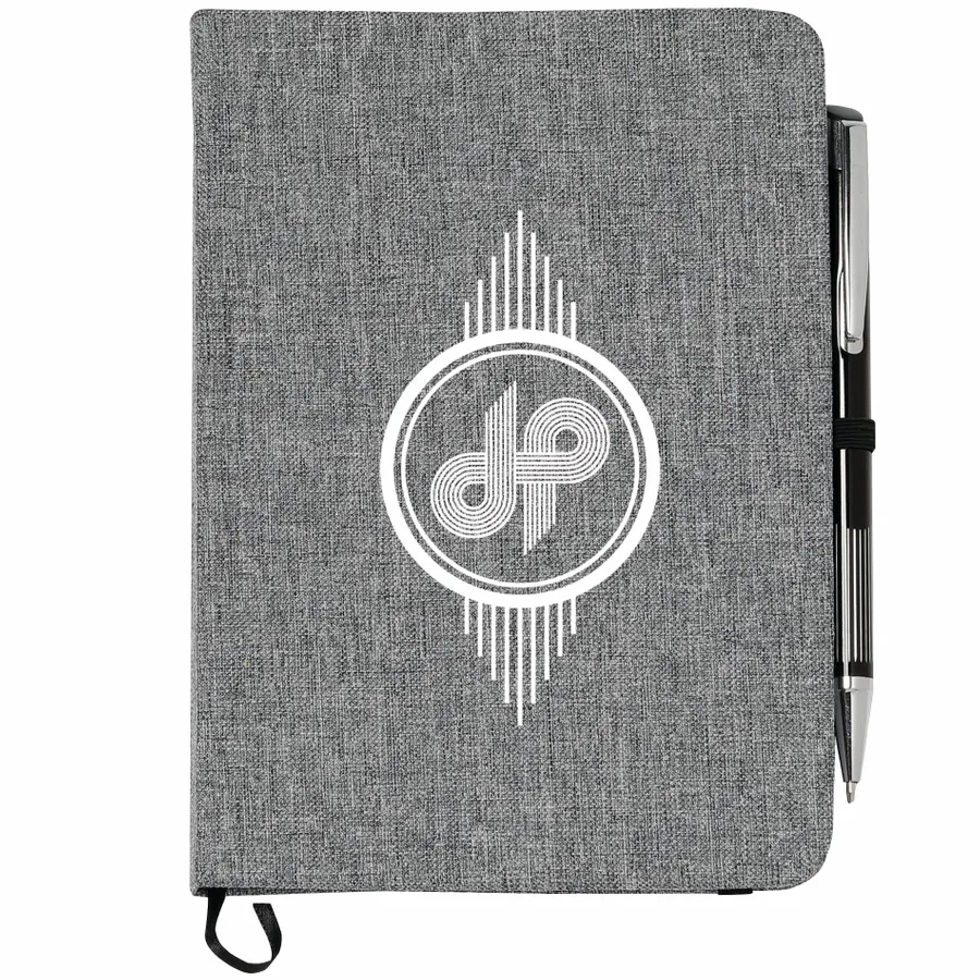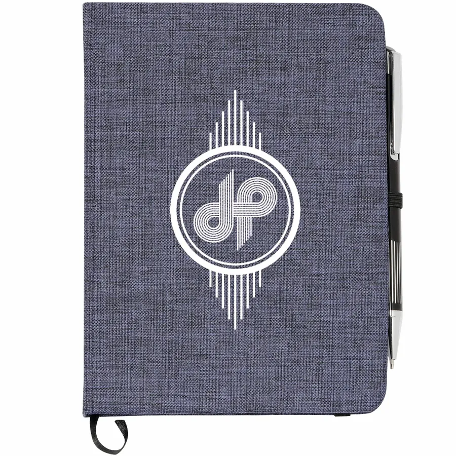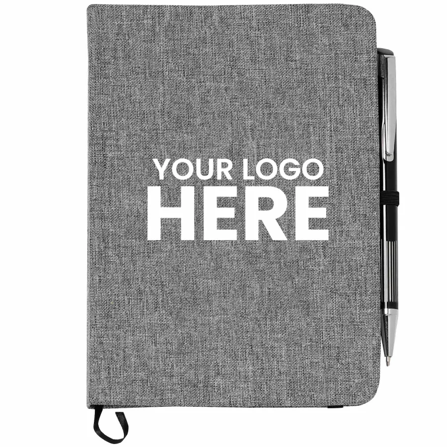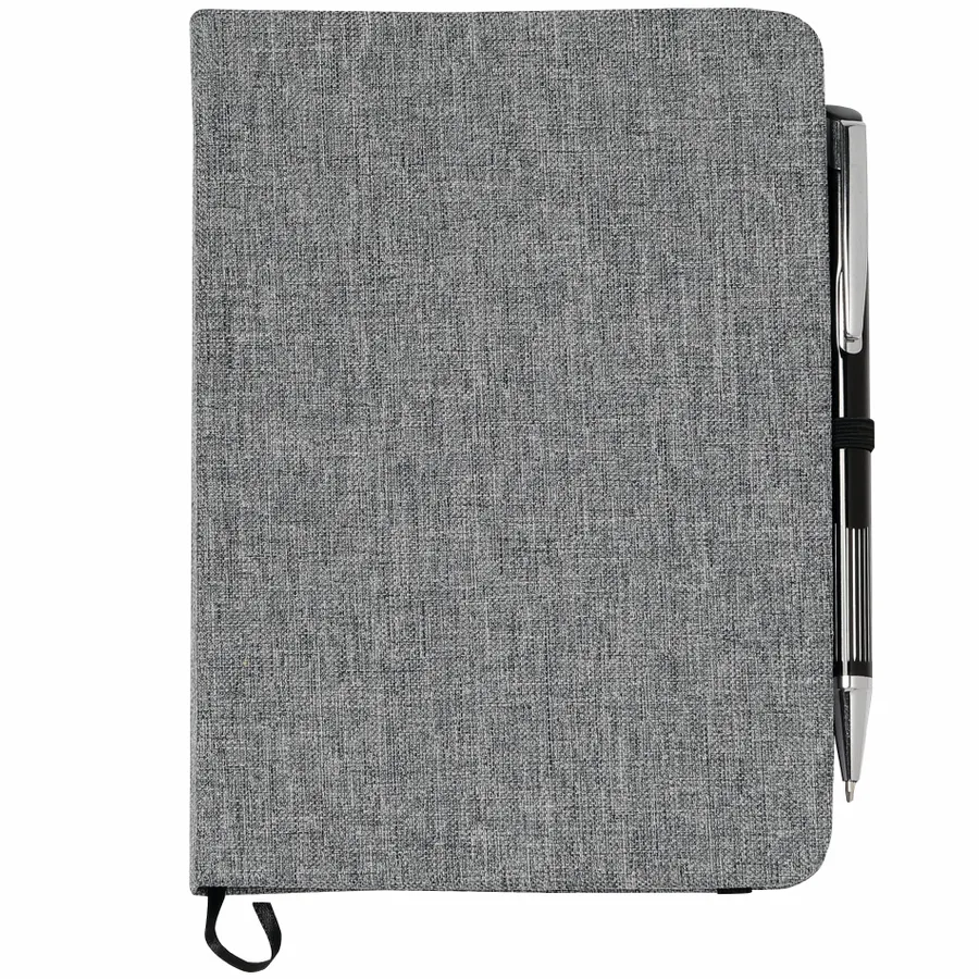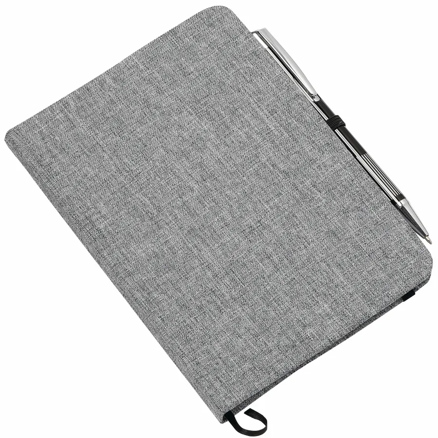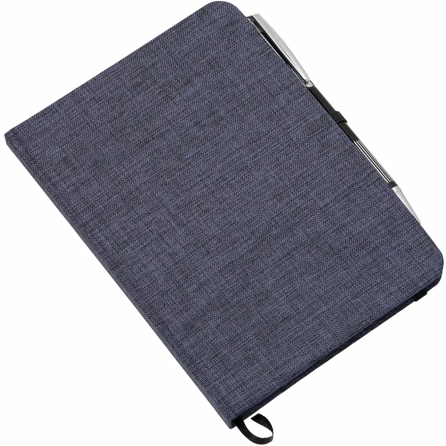Keep track of all your important notes and ideas using the Bullet 5 x 7 FSC Mix Heathered Bound Notebook, which features a built-in ribbon page marker to hold your place between uses. This heathered canvas covered bound notebook contains 80 sheets of white lined FSC Mix paper and has a built-in stretchy pen loop for your favorite writing instrument.