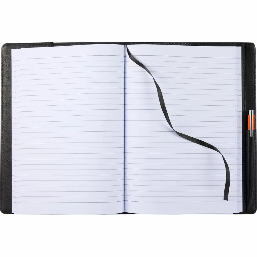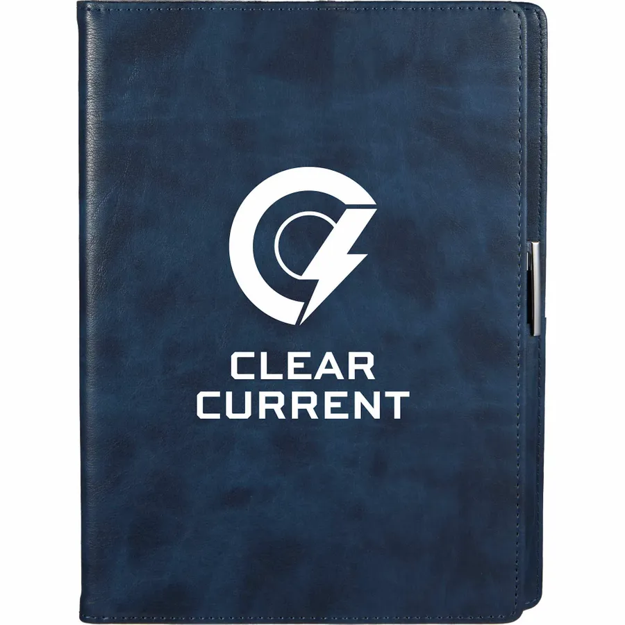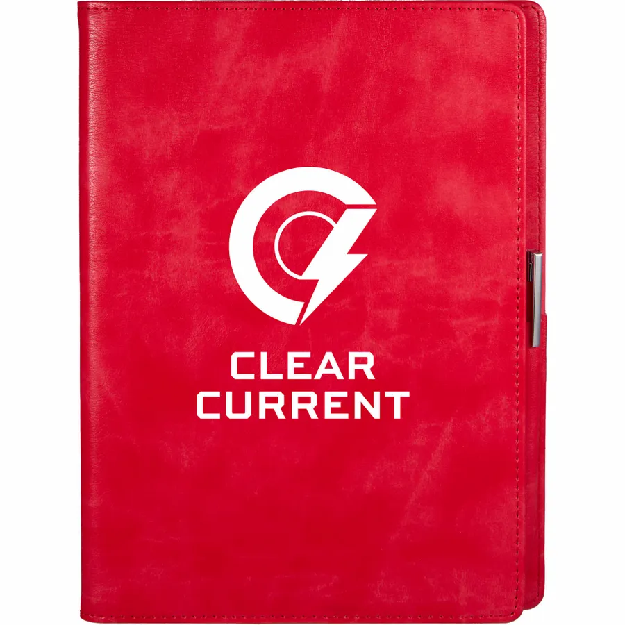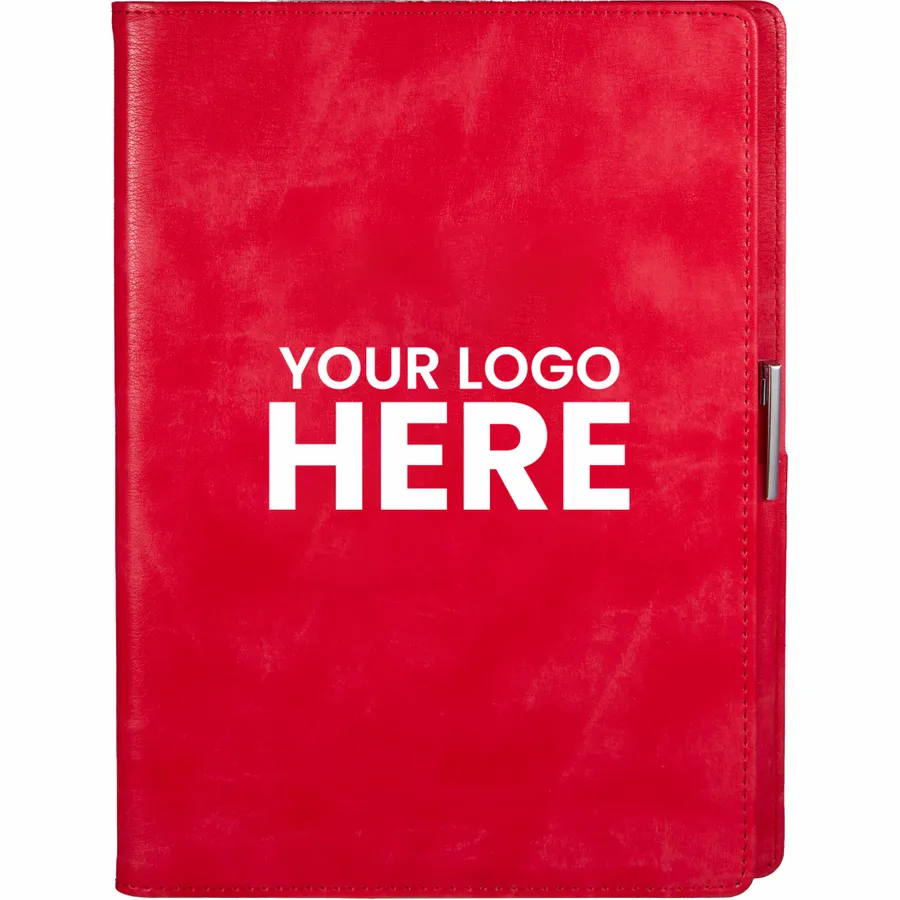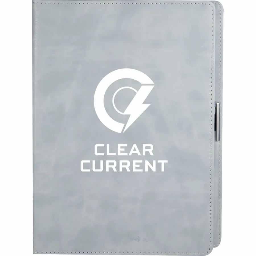 The 7 x 10 FSC Recycled Morano Refillable Journal combines style and sustainability, featuring a marbled cover crafted from 30% recycled post-consumer polyester and 70% polyurethane. This refillable journal includes an FSC recycled insert with 224 pages, making it a versatile choice for long-term use. Designed for convenience, it features two business card slots, two ribbon page markers, and a pen holder, keeping your essentials organized. Pen is not included. The JournalBooks logo is embossed on the back cover as a subtle detail. By choosing this notebook, you’re making a positive impact on the environment through a partnership with 1% For The Planet, as a portion of each sale supports environmental nonprofits.