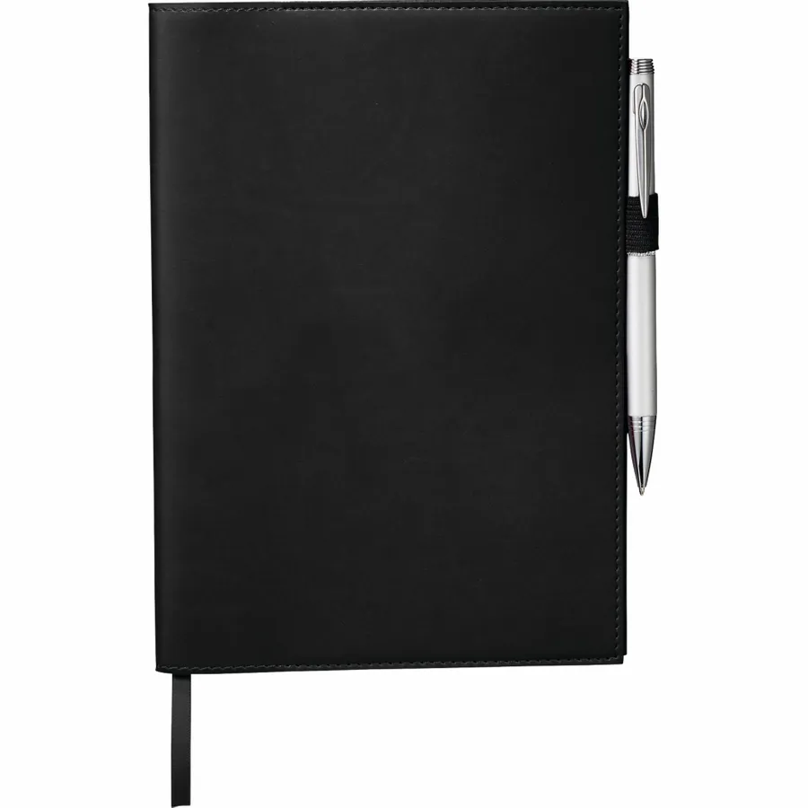 The 6 x 8.5 FSC Mix Pedova™ Refillable Journal comes with 80 sheets of white lined FSC Mix paper and features a unique refillable design, with extra paper (9091-98RF) available to order separately. Its cover is constructed from luxurious Italian UltraHyde materials, letting you take notes and record ideas with style. This convenient notebook has a built-in ribbon page marker to hold your place, plus a stretchy elastic pen loop. Pen is not included.