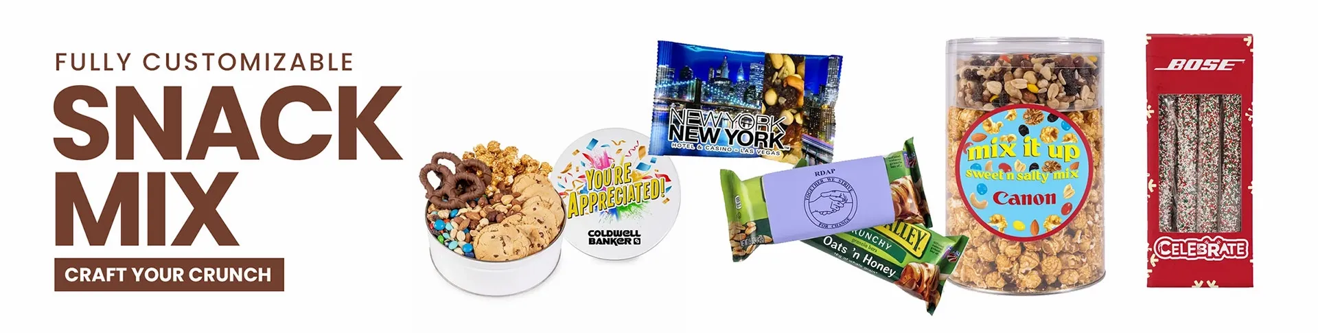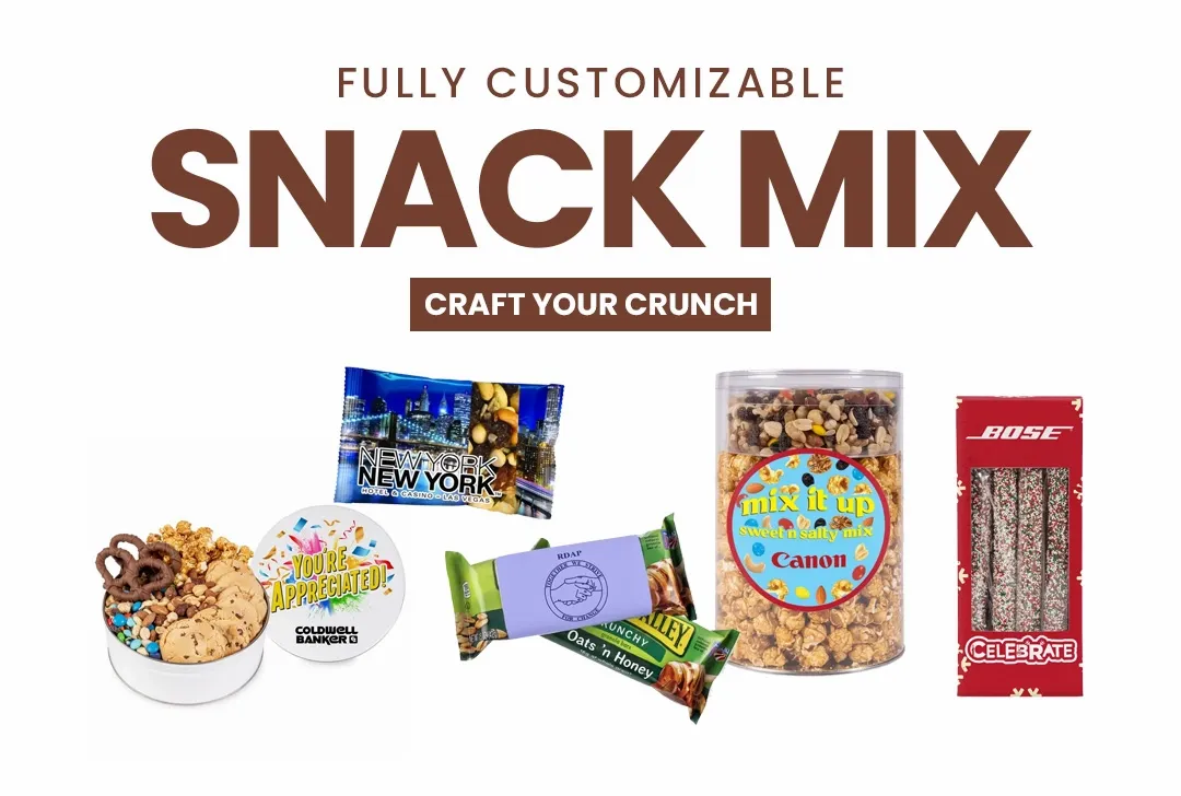 The perfect blend of taste and branding! The snack mix was a hit, and the custom logo on the packaging made it memorable. - Luke T.