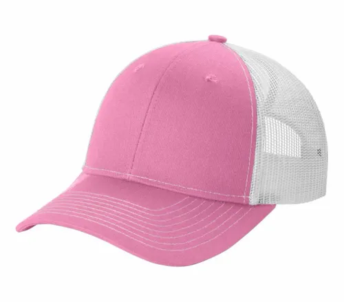 100% cotton twill front panels (Solids) 65/35 poly/cotton twill front panels (Heather Grey) 100% polyester mesh mid and back panels Women's fit Keyhole opening for high ponies or buns Structured Mid-profile 7-position adjustable snapback closure