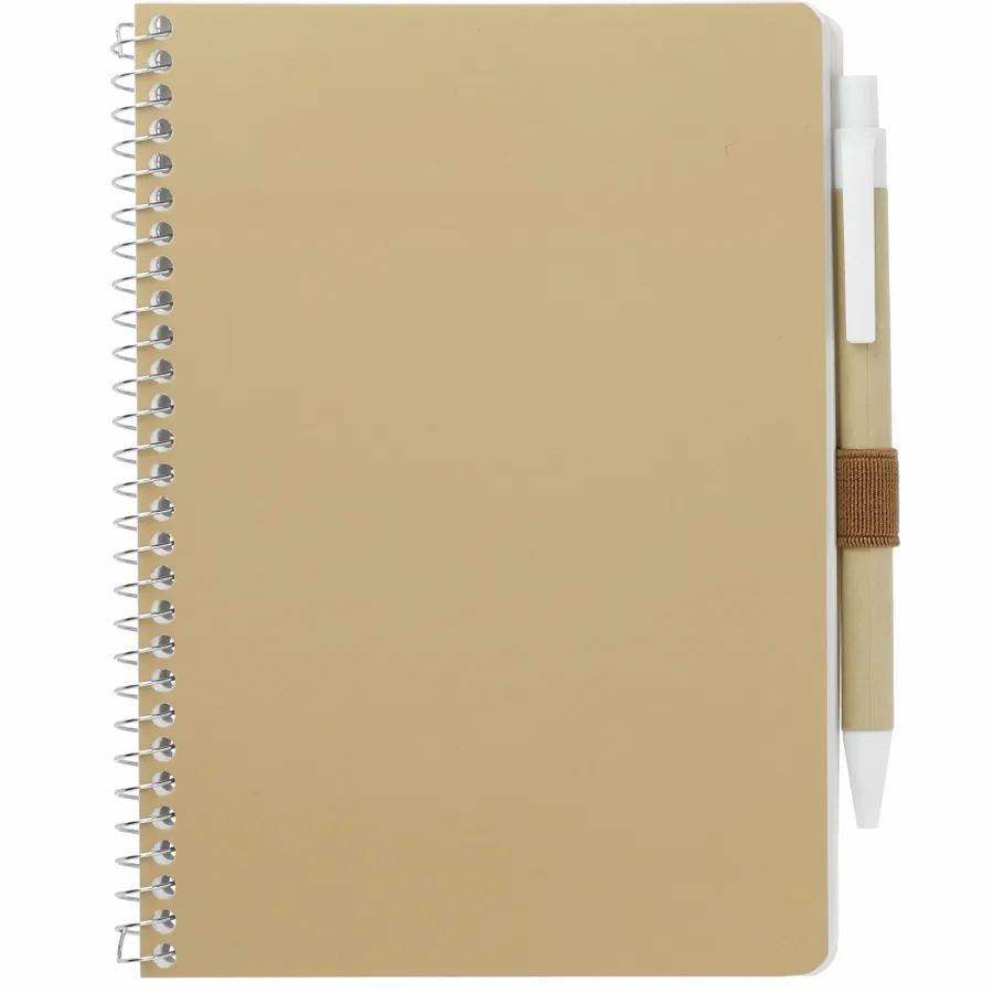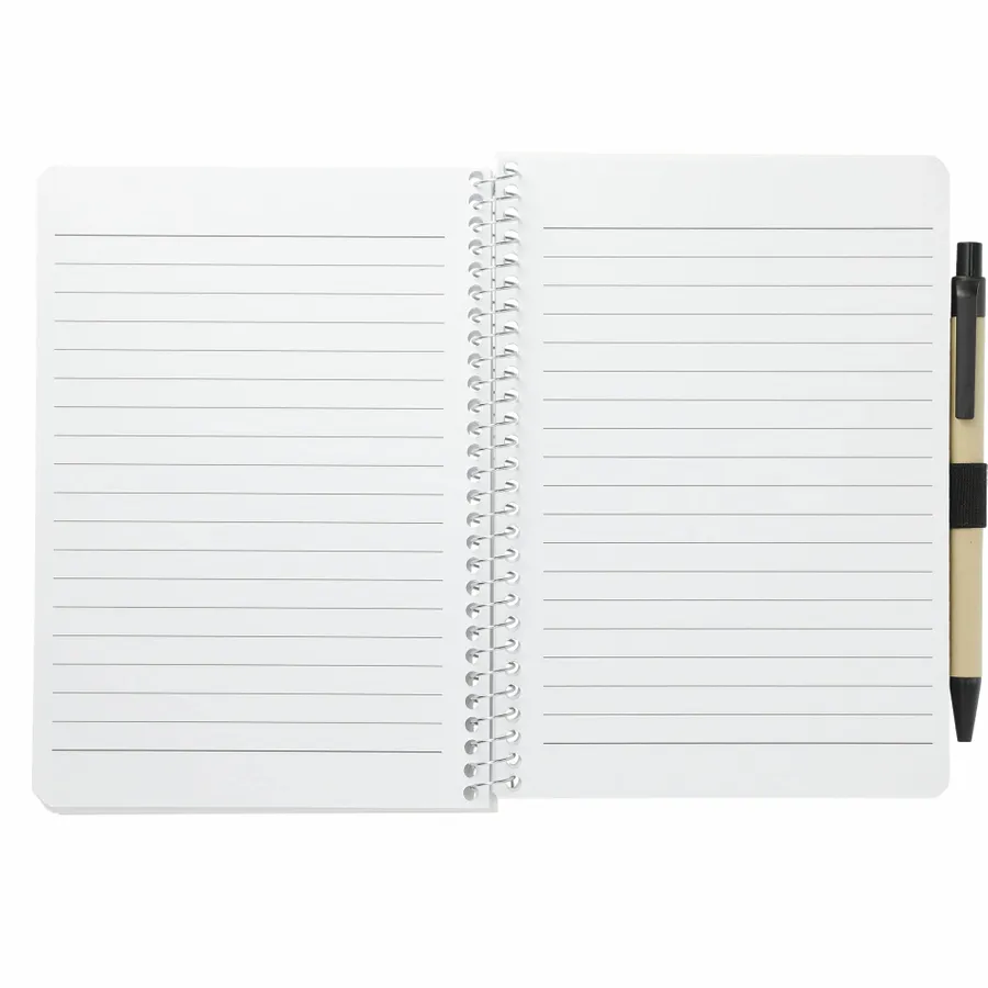 The 5” x 7” FSC Mix Spiral Notebook with Pen features a FSC -certified craft paper soft cover with 70 sheets of white FSC -certified, soy-based ink lined paper. Includes pen loop and pen with black ink. Through a partnership with 1% For The Planet, one percent of sales of all EcoSmart products are donated to environmental nonprofits. Due to the nature of the material, there may be color variances. Note that pens are packed separately.