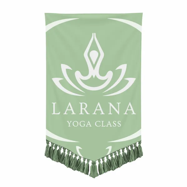 Add a touch of elegance and distinction to any space with a custom Ceremonial Tapestry. This vertical wall hanging features a formal banner style complemented by a beautiful bottom fringe, making it perfect for displaying awards, commemorating events, or adding a sophisticated touch to your home decor.