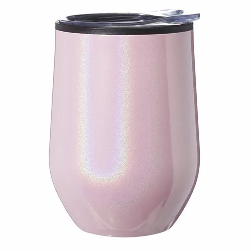 12 oz Iridescent Stemless Wine Glasses with Lid. Stainless Steel Exterior with Iridescent Color Coating and Black Plastic Interior. Press In Clear Titan Lid. Black EVA Bottom Pad. Easy-Grip Curved Body Design to Enjoy Your Wine, Coffee, Cocktails, Juices and More. Great for Outdoor Camping, Traveling, Office, Boating, Picnics, the Pool, the Beach or Patio Events. Best Gift Give Away Choices for Loved Ones and Special Occasions. Recommended Hand Wash Only