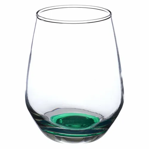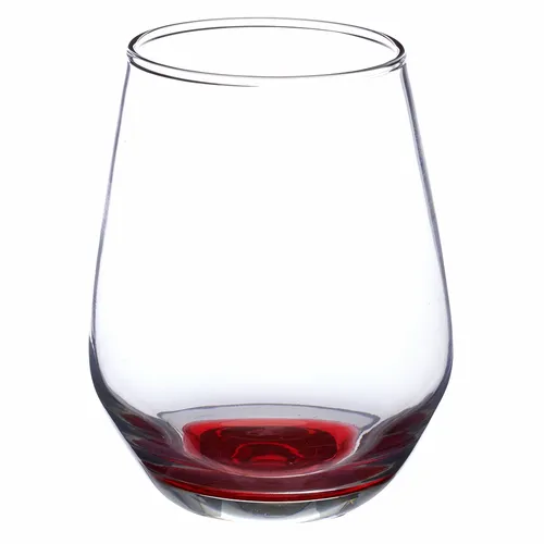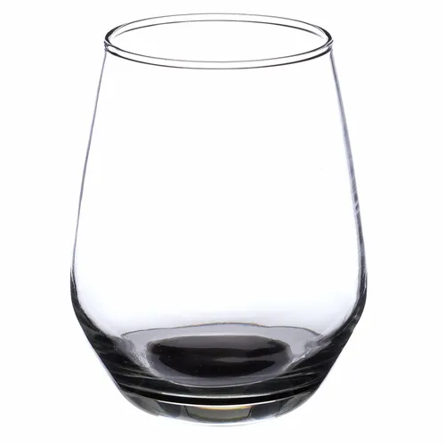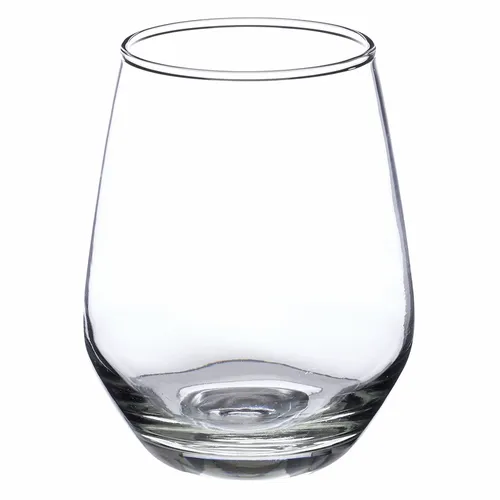 12 oz Glass Tumbler Silicia Rocks . Can Be Used with Red and White Wine . Stemless Design with Brim and a Handful Base . Clear Orb-Like Design. Recommended Hand Wash Only